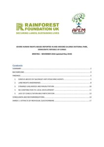 An investigation by the Rainforest Foundation UK (RFUK) and Congolese NGO Actions pour la Promotion et la Protection des Peuples et Espèces Menacés (APEM), uncovered a worrying number of human rights abuses allegedly carried out by Salonga National Park’s anti-poaching agents, who receive support and funding from a range of international donors. Allegations include cases … Read more